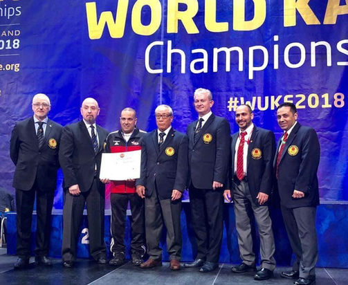 WORLD CHAMPIONS, Congratulations to Sensei Mostafa Elrakabawy on winning the GOLD MEDAL & Joseph Musumeci on winning the Silver & Bronze Medal at the 2018 WUKF World Karate Championships Dundee, Scotland. Also congratulations to Sensei Yasser Salama on being awarded his 6th Degree Black Belt.